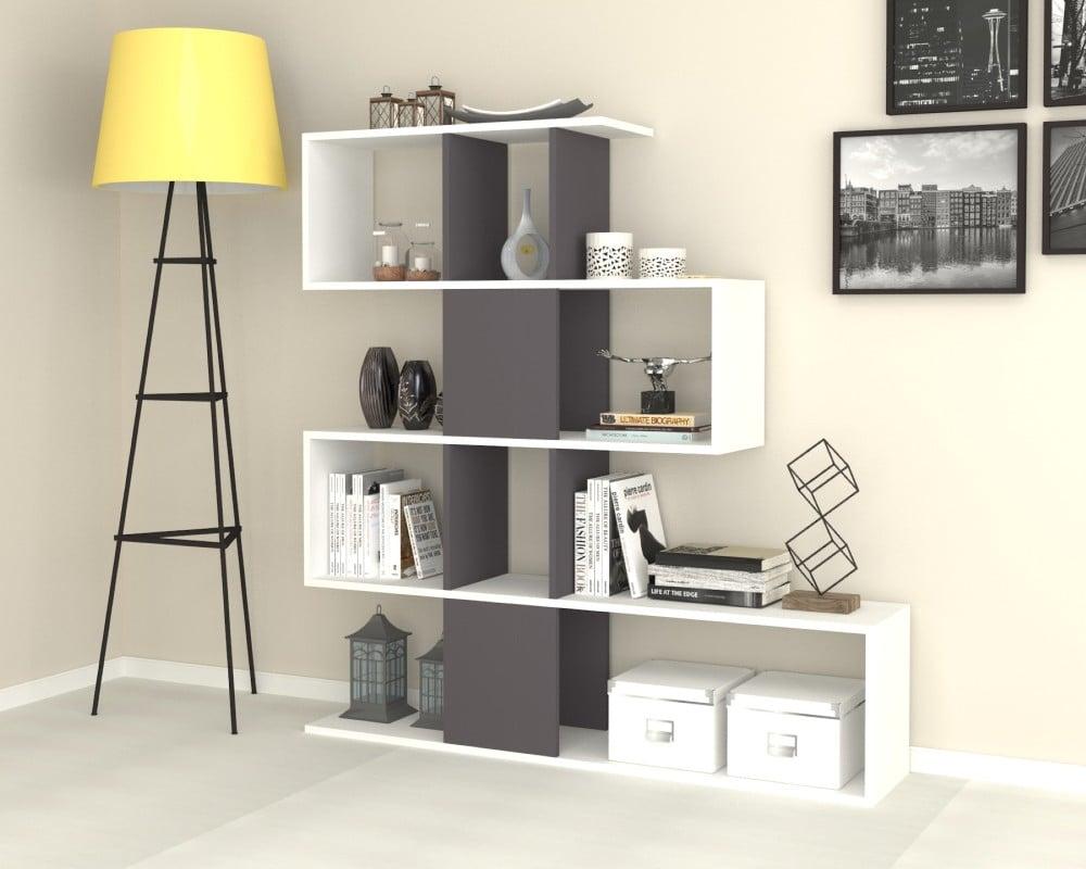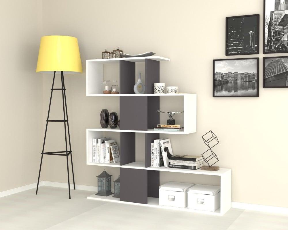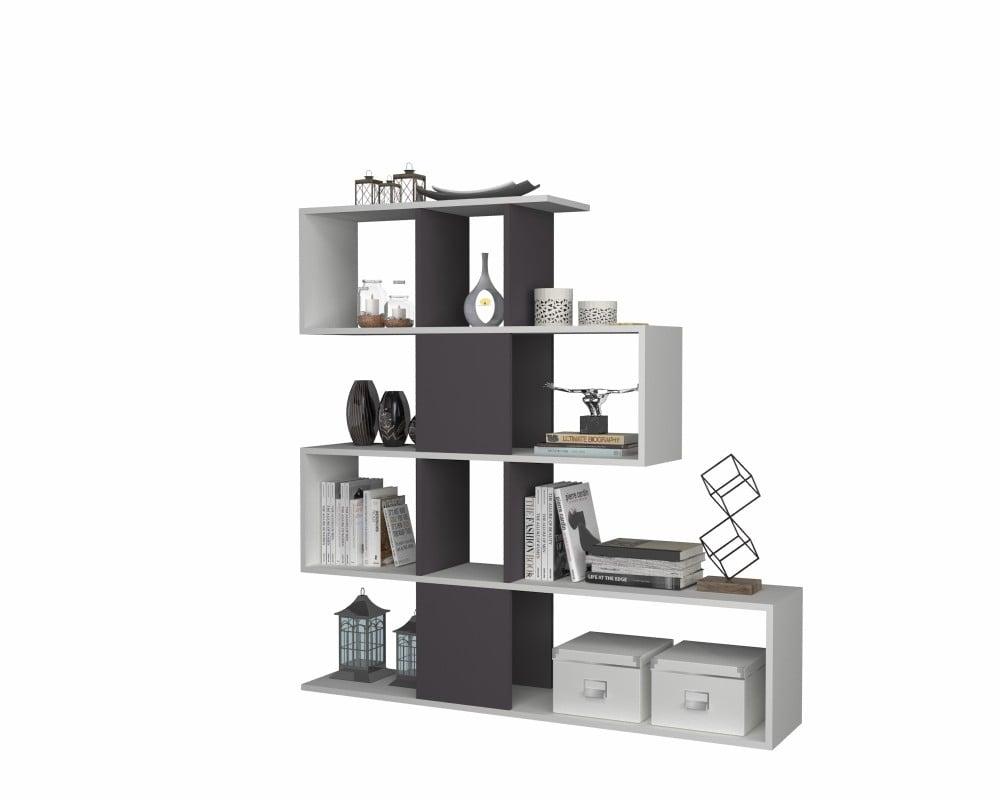 Aktif دولاب مكتبة لون ابيض ورمادي موديل